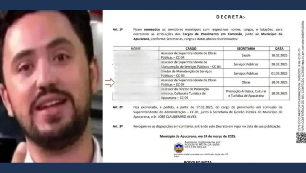 Com 101 dias de governo, Rodolfo Mota segue nomeando aliados e expositores para cargos comissionados — uma prática que tem gerado intensos debates e críticas da população.