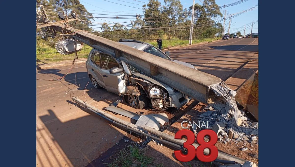 Na noite da terça-feira (16), um Hyundai Tucson colidiu com um poste na Rua Nova Ucrânia, interrompendo o tráfego no local. O veículo, conduzido por uma mulher, estava em direção ao centro da Vila Rural quando a motorista perdeu o controle devido a um desnível na via, causando a colisão que derrubou um poste e danificou outro.