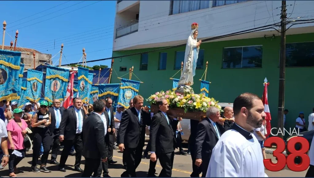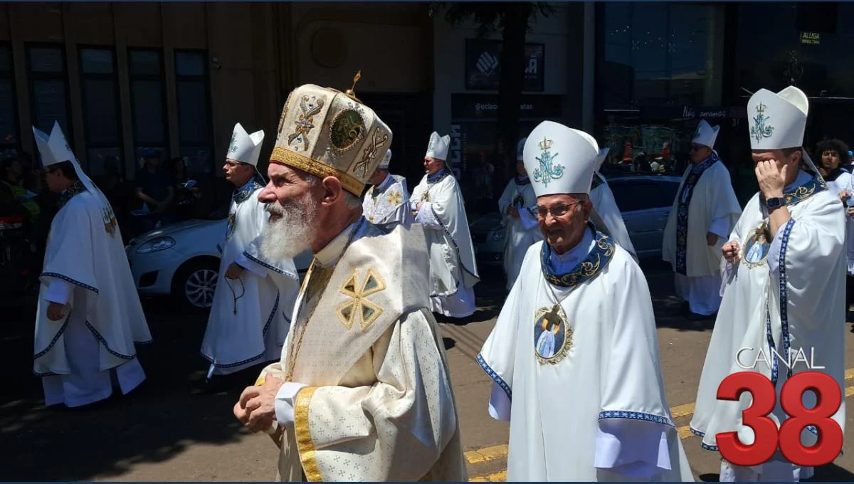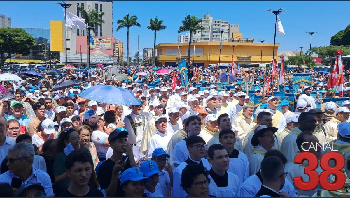 A procissão segue em torno da Catedral Nossa Senhora de Lourdes, reunindo autoridades e devotos de 36 municípios da Diocese.