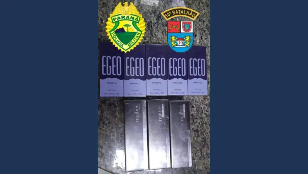 No momento da aproximação, os militares visualizaram uma pessoa vestida de preto entrando rapidamente no local. Diante da fundada suspeita, a equipe passou a realizar vigilância e ouviu uma conversa indicando que alguém deveria sair rapidamente dali. Em seguida, foi feita uma verificação em um dos quartos, onde foram encontradas sete caixas de perfumes, sendo quatro da linha Egeo e três da linha Malbec, todos idênticos aos produtos furtados da loja.
