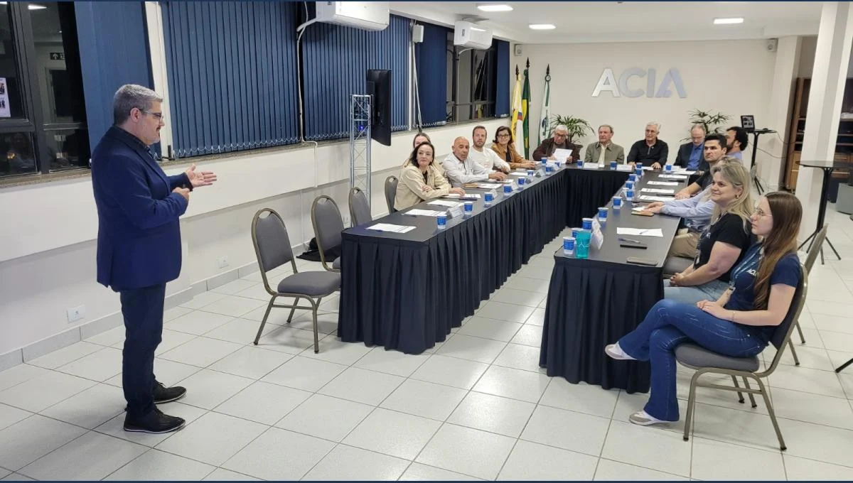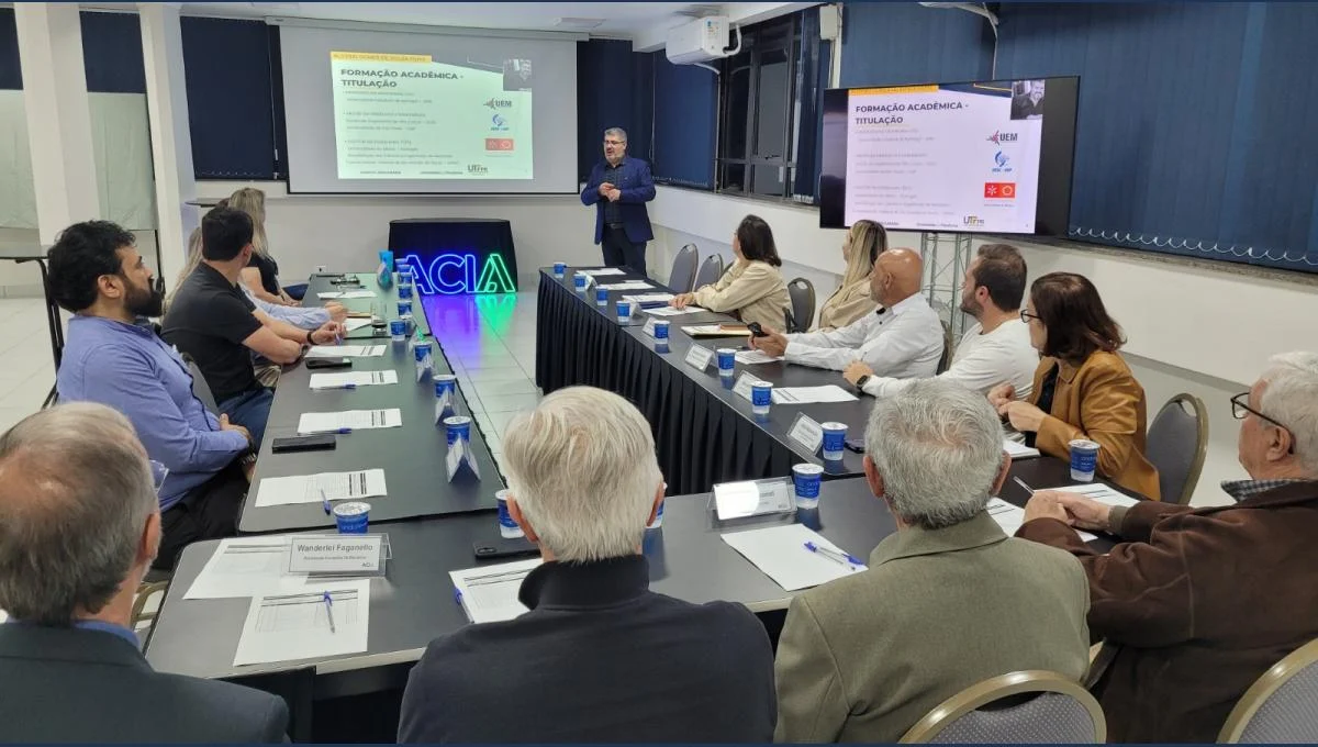 A homenagem ocorreu durante a reunião da diretoria da entidade, no auditório da ACIA, e destacou a contribuição do professor para o desenvolvimento acadêmico e tecnológico da cidade.