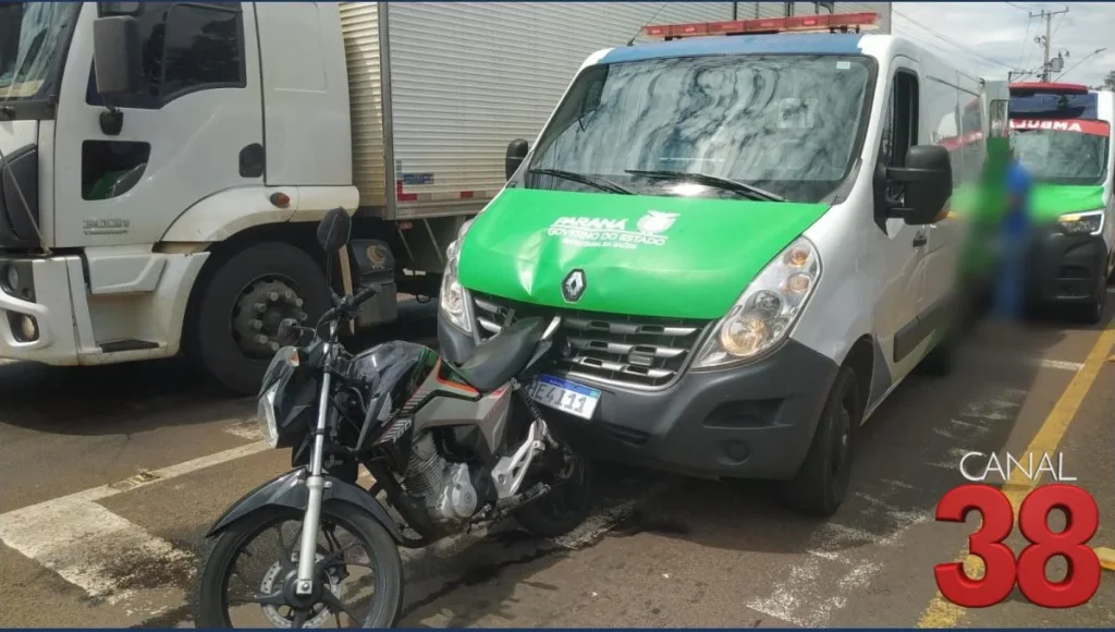 Um acidente de trânsito ocorrido nesta terça-feira (18) na Avenida Minas Gerais, em Apucarana, envolveu uma ambulância do Governo do Estado, proveniente da cidade de Mauá da Serra. O veículo estava transportando uma paciente com a perna quebrada para o Hospital da Providência quando a colisão aconteceu.