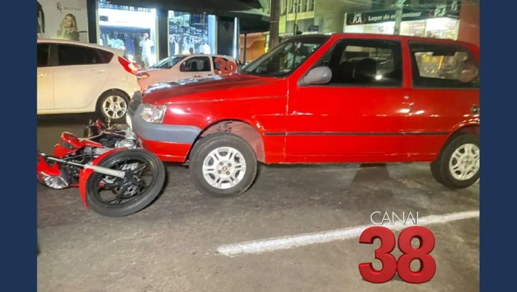 Na noite deste sábado (07), um acidente envolvendo um Fiat Uno e uma motocicleta Honda CG Titan 150 mobilizou equipes do SAMU e SIATE na área central de Apucarana. O fato aconteceu em frente ao Centro Norte Shopping Center, na Rua Miguel Simão, especificamente na Praça do Redondo.