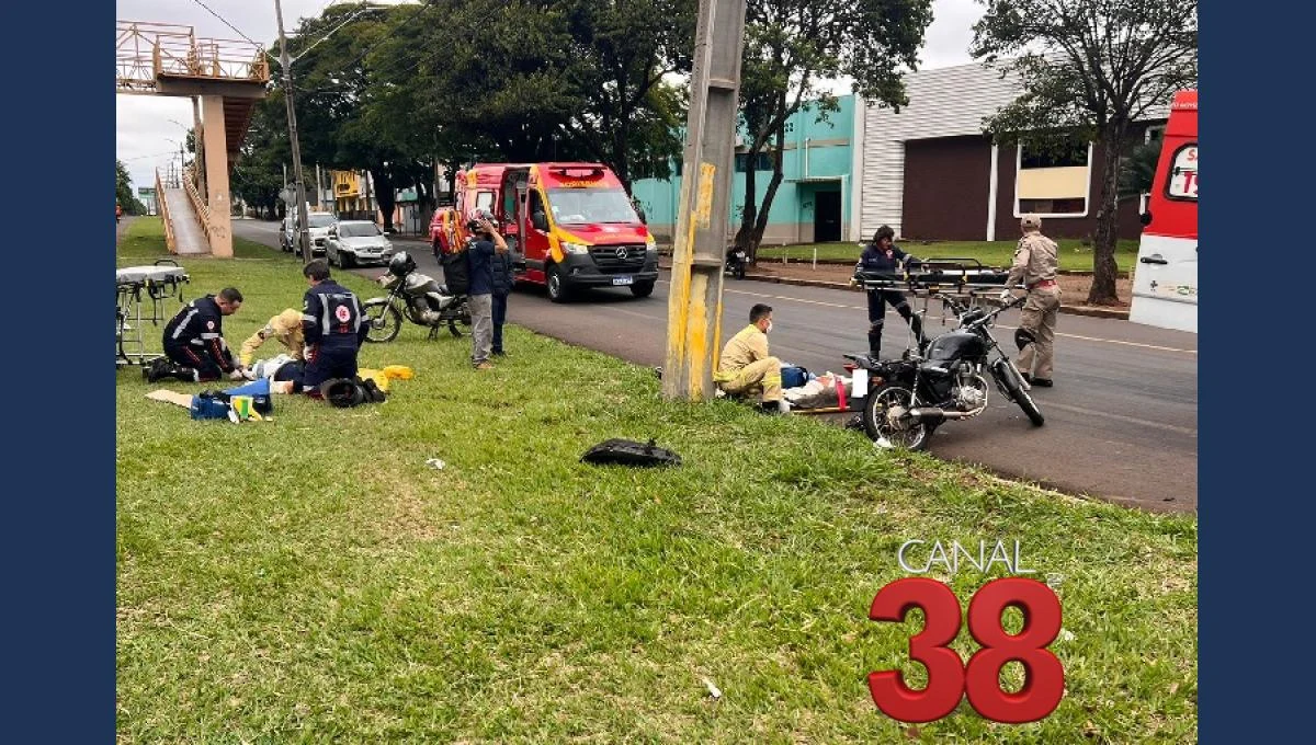 Ele apresentava uma suspeita de luxação no joelho e possíveis fraturas na tíbia e no úmero. Ambos os ocupantes da motocicleta foram levados ao HONPAR para avaliação médica.”