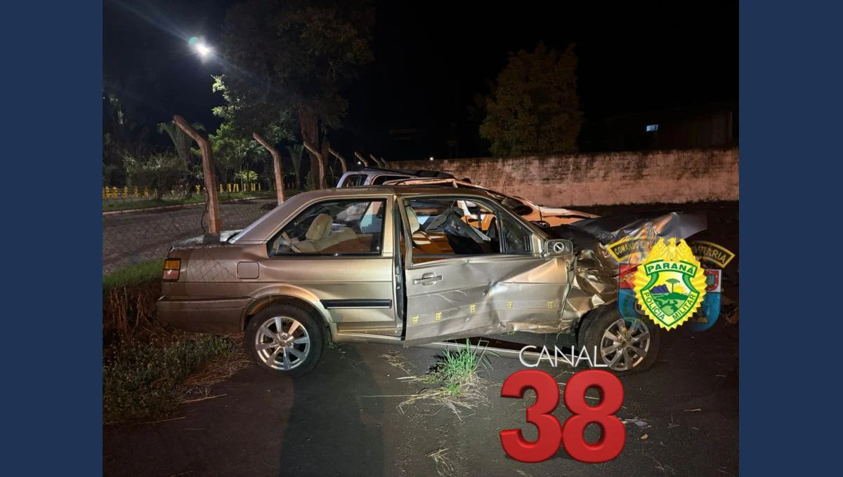 Na noite desta sexta-feira (7), um grave acidente foi registrado na PR-082, próximo ao km 345, em Jardim Alegre. De acordo com informações da Polícia Rodoviária Estadual, um veículo VW Santana, com placas de Lidianópolis, perdeu o controle, colidiu contra árvores no sentido contrário da pista e, em seguida, capotou.