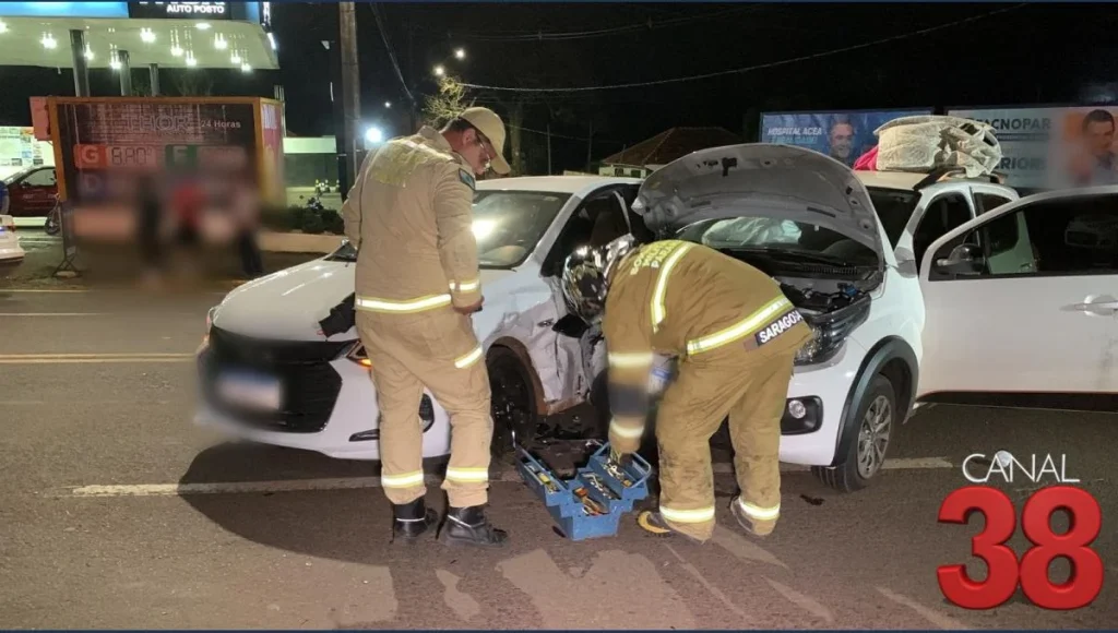 Um acidente de trânsito registrado na noite desta sexta-feira (25) mobilizou equipes do Corpo de Bombeiros na Avenida Governador Roberto da Silveira, em Apucarana. Dois veículos se envolveram na colisão: um Fiat Mobi e um Chevrolet Onix.