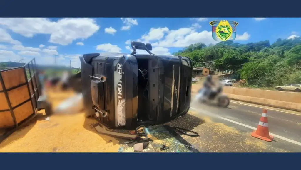 Segundo informações da Polícia Rodoviária, o condutor, 25 anos, perdeu o controle do veículo em uma rampa com declive, resultando no tombamento na margem direita da via. Apesar do susto, o motorista não sofreu ferimentos.