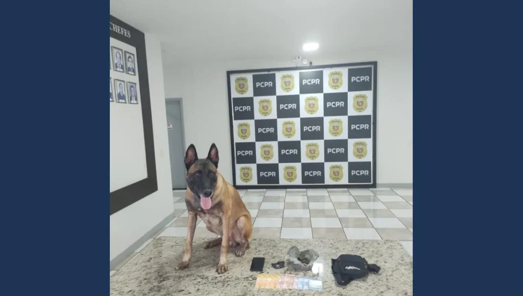 Com apoio da equipe de operações com cães, foram localizados 56 gramas de maconha e 0,5 gramas de crack escondidos na vegetação próxima ao local da abordagem. Além disso, R$ 131,00 em dinheiro trocado foi apreendido.