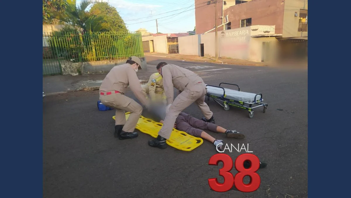 Um adolescente de 17 anos, que conduzia uma bicicleta motorizada, entrou na via e acabou colidindo contra um veículo Chevrolet Onix, conduzido por uma mulher de 45 anos, que subia pela Rua Firmino Alves Campos.
