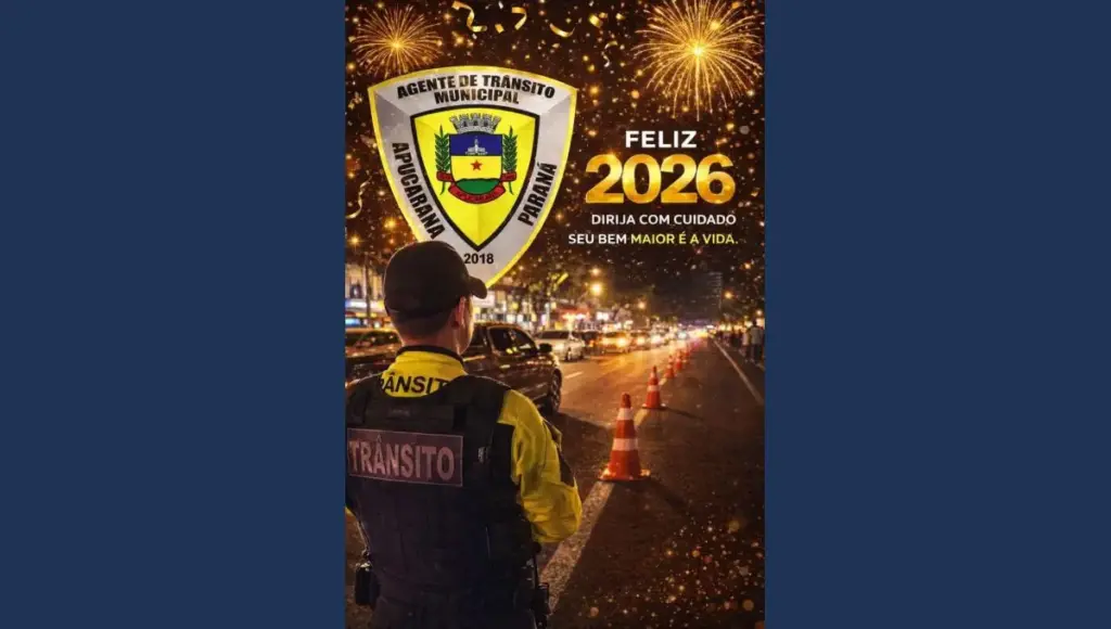 Os Agentes de Trânsito de Apucarana desejam a toda a população um Feliz 2026, com saúde, paz e segurança para todos.