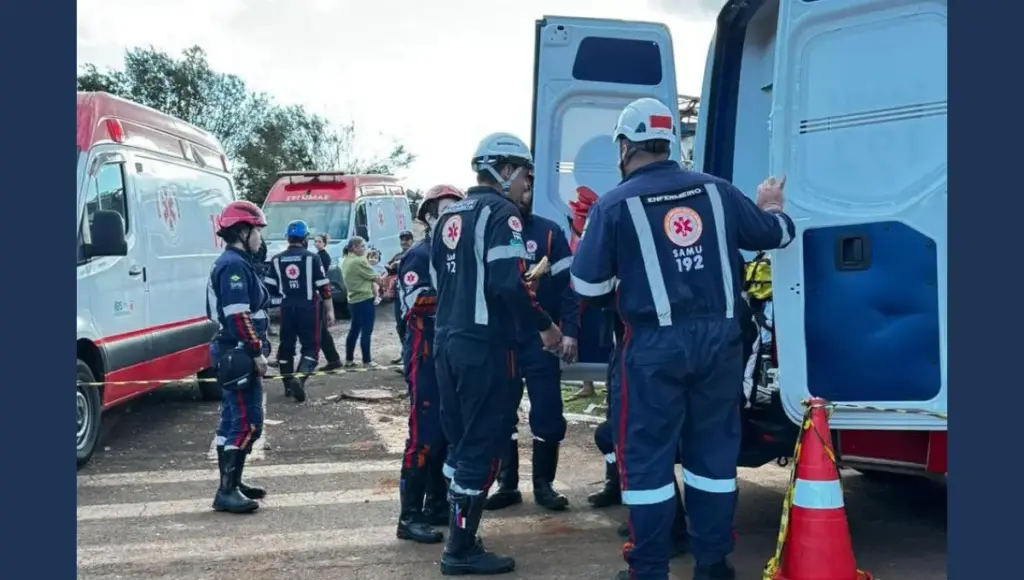 Profissionais do Samu de Cascavel também se deslocaram para a ocorrência. “Fomos acionados por volta de 21h30 na sexta-feira pela nossa direção, disponibilizamos seis ambulâncias, três de suporte básico e três avançado, mobilizamos as equipes que estavam de folga e nos deslocamos até Rio Bonito do Iguaçu”, contou o enfermeiro coordenador da Base Cascavel do Samu, Adeilson Gustavo Pimentel dos Santos.
