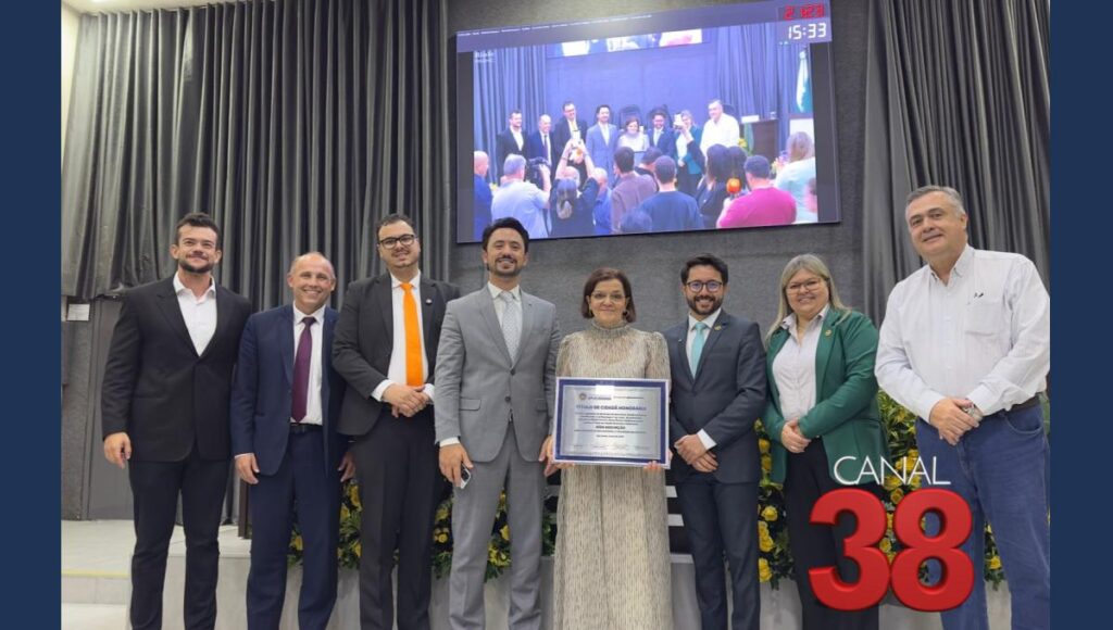 A honraria foi proposta pelo vereador Moisés Tavares e aprovada por unanimidade pelos vereadores, reconhecendo a trajetória da empresária no comércio, nas entidades de classe e em diversos trabalhos sociais realizados na cidade.