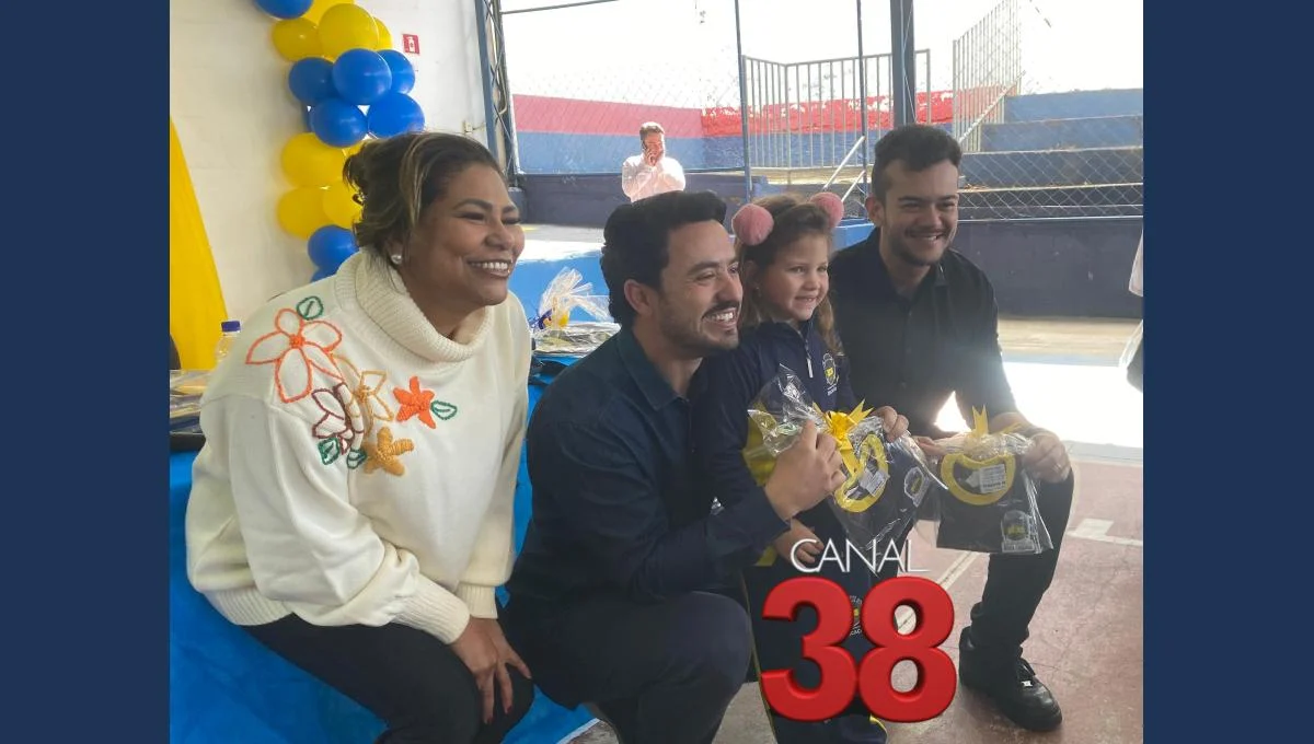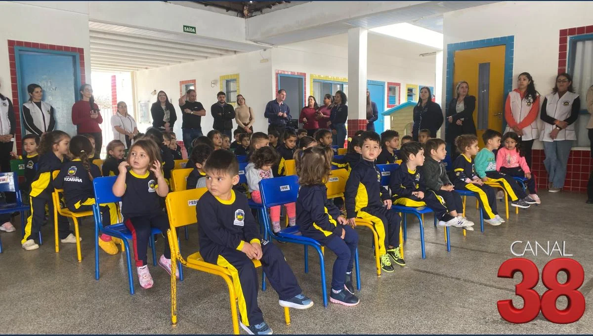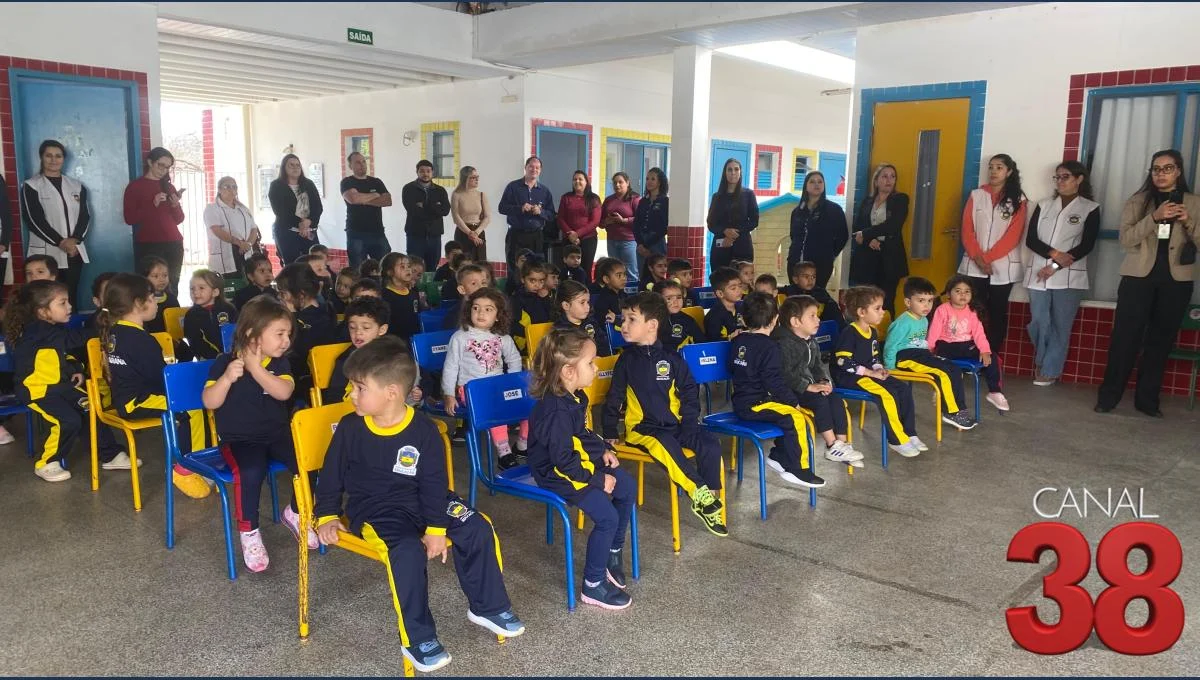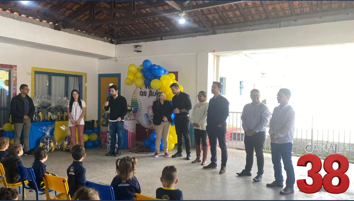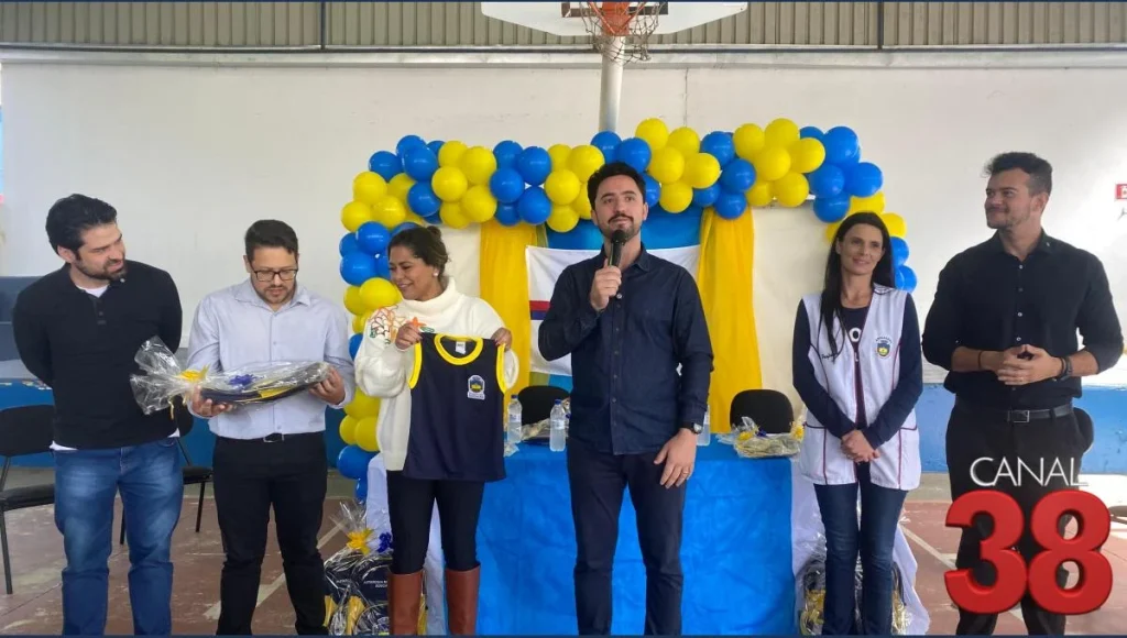 “É uma alegria poder falar com todo mundo que acompanha o Canal 38 e dizer que a Apucarana retorna com 13 mil alunos às aulas. Desde os CMEIs até as escolas, com uma entrega simbólica e muito importante das mochilas e regatas”, disse.