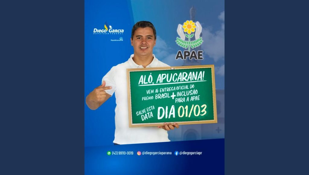 Diego Garcia destaca a importância de valorizar o trabalho das instituições que atuam em prol da inclusão e amparo das pessoas com deficiência. “Tive a oportunidade de conhecer de perto o trabalho da APAE de Apucarana e fiquei encantado com os resultados no bem-estar, evolução e desenvolvimento das crianças e adolescentes atendidos. Com certeza as APAES precisam ser reconhecidas e terem seu trabalho fortalecido”, afirmou.
