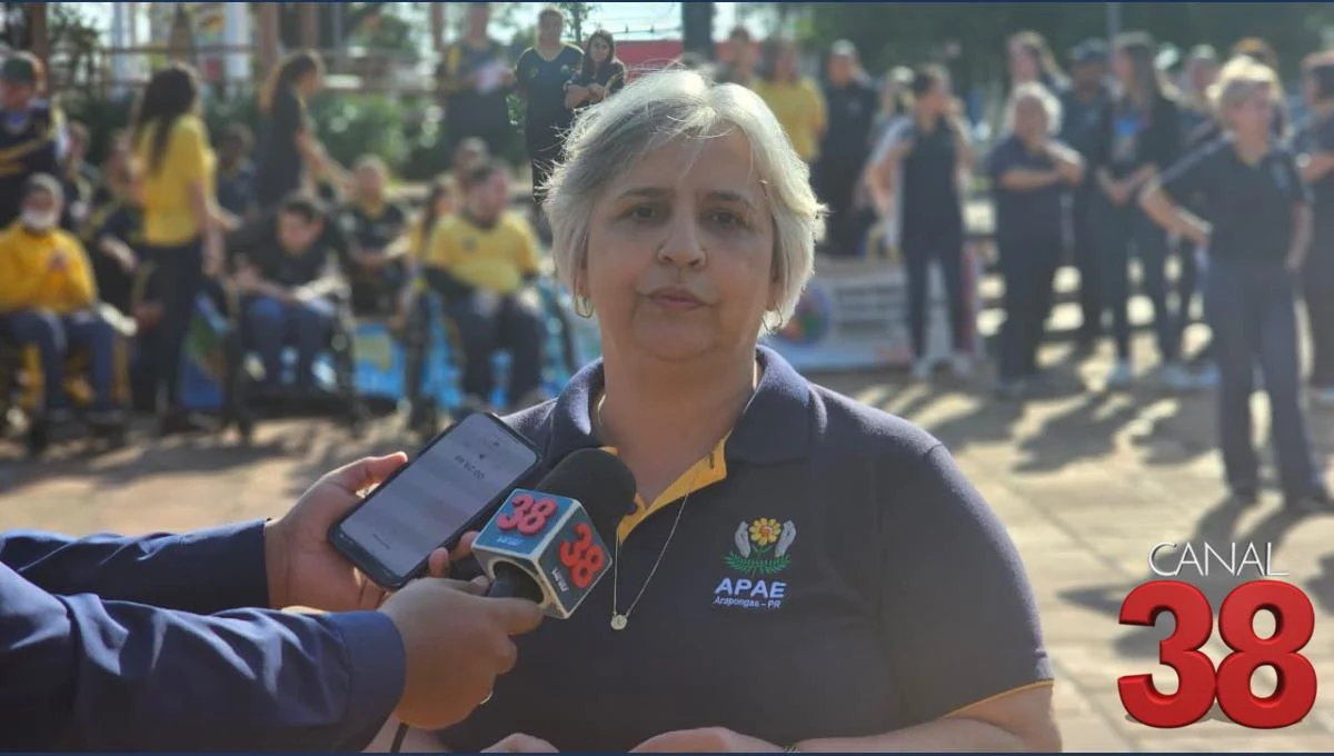 A APAE é muito importante e essas caminhadas, esses eventos que nós participamos mostram a verdadeira inclusão social, onde os alunos podem estar aqui junto com a comunidade mostrando o nosso trabalho. Este é o momento de mostrar que a escola especializada precisa demonstrar o trabalho que faz e que a inclusão realmente acontece em nossa comunidade, no Paraná, na nossa cidade e principalmente na nossa escola.