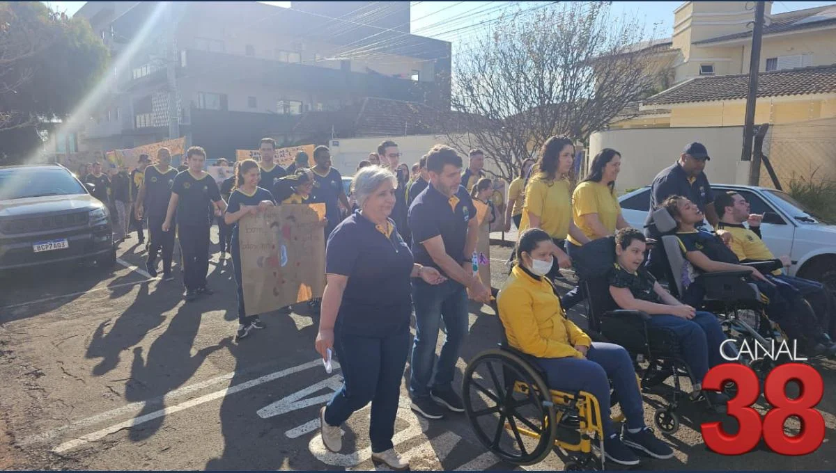 A APAE de Arapongas promoveu nesta quinta-feira (21) um grande ato no centro da cidade para marcar o início da Semana Nacional da Pessoa com Deficiência Intelectual e Múltipla. A ação contou com a participação de alunos, colaboradores da instituição e apoio da Guarda Municipal.
