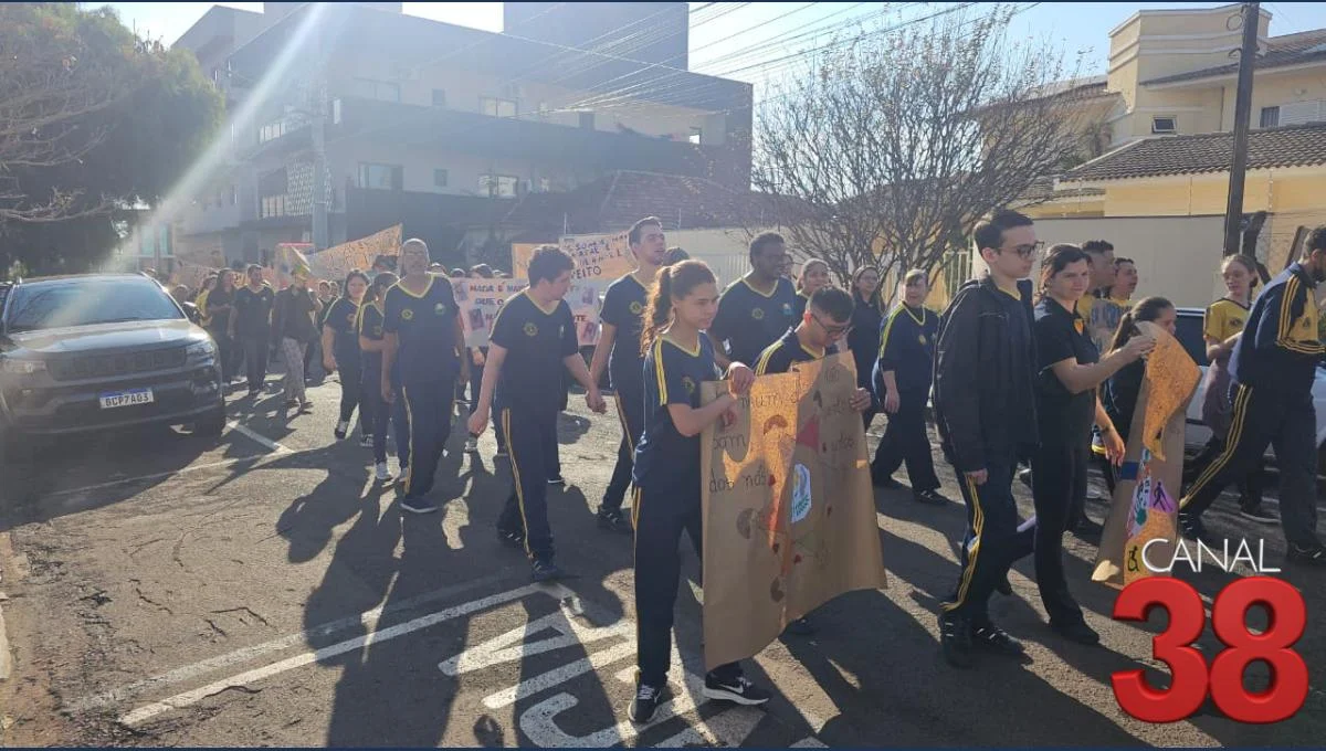 “Justamente, a Patrulha Escolar, em apoio à APAE, situada ali na Rua Harpia, teve a ideia de realizar essa passeata, que saiu da Rua Árpia até a Avenida Arapongas, aqui na Praça da Matriz. Foi feito todo o controle do fluxo de trânsito para a segurança de todos os envolvidos. Na sequência, também foi entregue um panfleto informativo sobre a semana em prol do deficiente intelectual e múltiplo, destacando a inclusão social e trazendo algumas dicas informativas para a sociedade. A Patrulha Escolar está sempre em apoio à APAE, fazendo parcerias dentro da unidade de ensino e contribuindo para o desenvolvimento dos alunos ao longo do ano.”