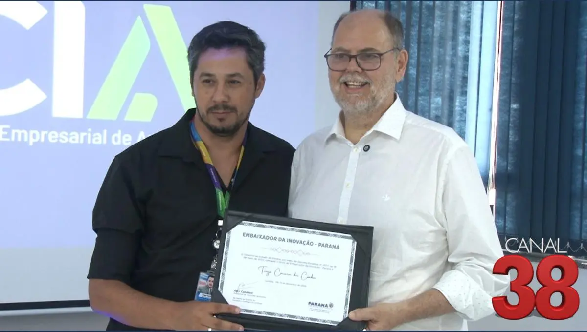 O ex-presidente da ACIA e atual presidente do Conecta Apucarana, Wanderlei Faganello, e o consultor do Sebrae e membro da governança do Conecta Apucarana, receberam o Prêmio Embaixador da Inovação do Governo do Paraná, reconhecimento concedido pela Secretaria da Inovação e Inteligência Artificial a pessoas que se destacam pelo trabalho de articulação, conexão e fortalecimento da inovação em suas cidades e no Estado.