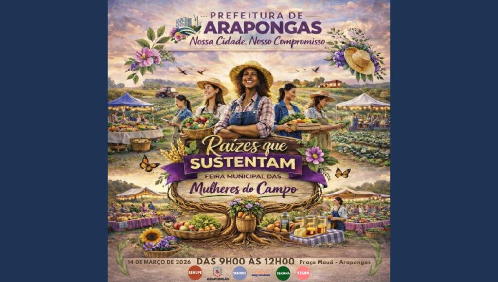 A Prefeitura de Arapongas promove, neste sábado (14), a Feira Municipal das Mulheres do Campo cujo tema é “Raízes que Sustentam”. O evento será na Praça Doutor Júlio Junqueira (Praça Mauá), das 09h às 12h. Será uma manhã especial, com produtos fresquinhos, agricultura familiar, valorização da mulher rural e muito mais.