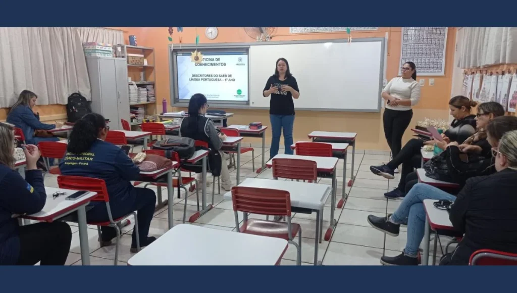 A Prefeitura de Arapongas, por meio da Secretaria Municipal de Educação, promoveu, no mês de junho, a 2ª oficina de formação voltada aos professores do 5º ano em Língua Portuguesa, com foco na preparação para o Sistema de Avaliação da Educação Básica (SAEB). A ação teve o objetivo de aprofundar os estudos nos descritores que apresentaram maior índice de erro por parte dos estudantes na última avaliação externa.