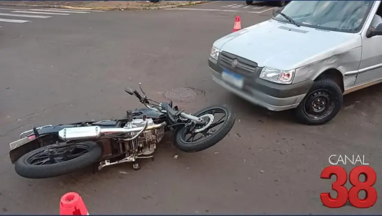 Um acidente entre um carro e uma motocicleta foi registrado no fim da tarde desta quarta-feira (29), na Avenida Itararé, esquina com a Rua Carlos de Carvalho, no Jardim Ponta