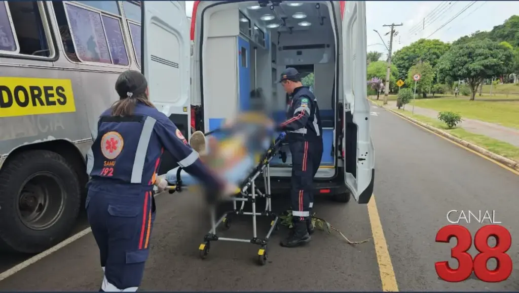 Na sequência, a condutora acabou colidindo contra um ônibus que estava parado no local. Com o impacto, a vítima, de 33 anos, sofreu suspeita de fratura no joelho esquerdo, além de escoriações na mão e no antebraço esquerdo.