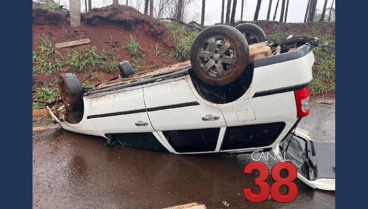 Na tarde desta quinta-feira (10), um capotamento foi registrado no Km 2 da PR-444, em Arapongas. De acordo com informações preliminares, o acidente ocorreu quando o condutor de um VW Gol perdeu o controle do veículo devido à pista molhada pela chuva, resultando no capotamento. Felizmente, não houve vítimas, e o motorista recusou atendimento médico no local.
