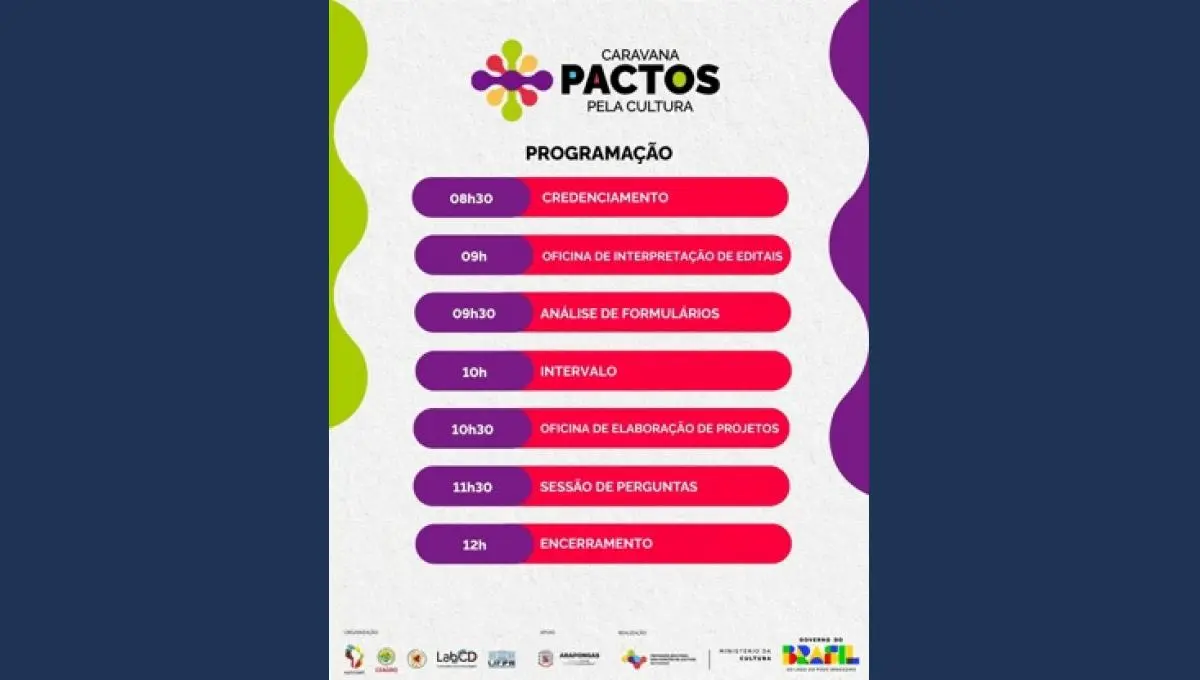 As atividades são voltadas para agentes culturais e todos os interessados em aprender a criar e desenvolver projetos culturais. As inscrições para o encontro podem ser feitas por meio de formulário disponibilizado pelos organizadores.