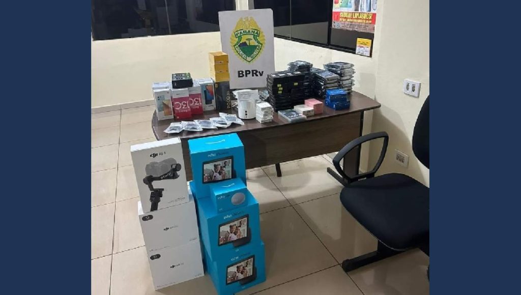 Durante uma operação de rotina na PR 170, em Porecatu, uma carga de produtos eletrônicos foi apreendida pelas autoridades locais. O fato ocorreu quando um veículo Renault/Logan, com placas de emplacamento na cidade de Poloni – SP, foi abordado pela polícia. O veículo era conduzido por uma motorista de 26 anos, acompanhada por uma passageira de 66 anos.