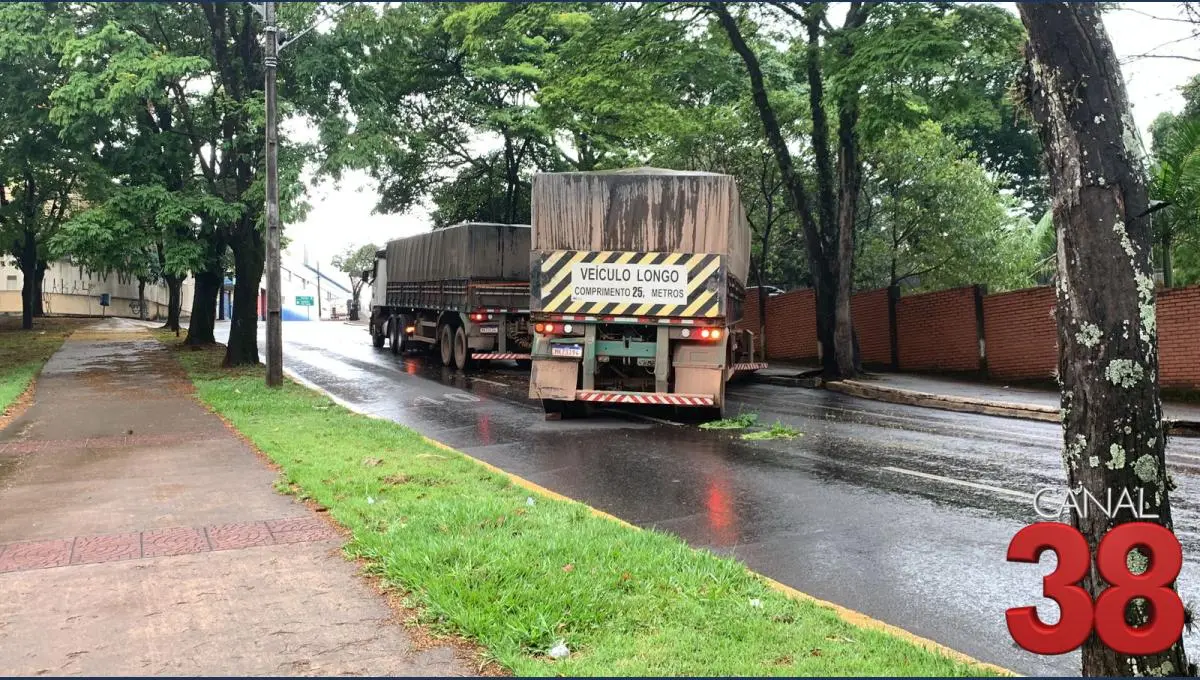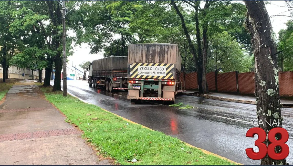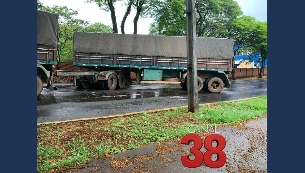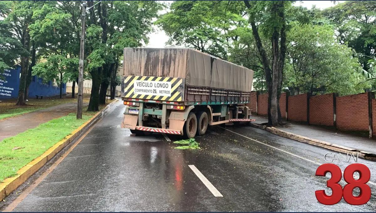 Uma carreta bi-trem acabou formando um “L” ao tentar subir a Rua Desembargador Clotário Portugal, nas proximidades da Unidade de Pronto Atendimento (UPA) de Apucarana, na manhã deste domingo.