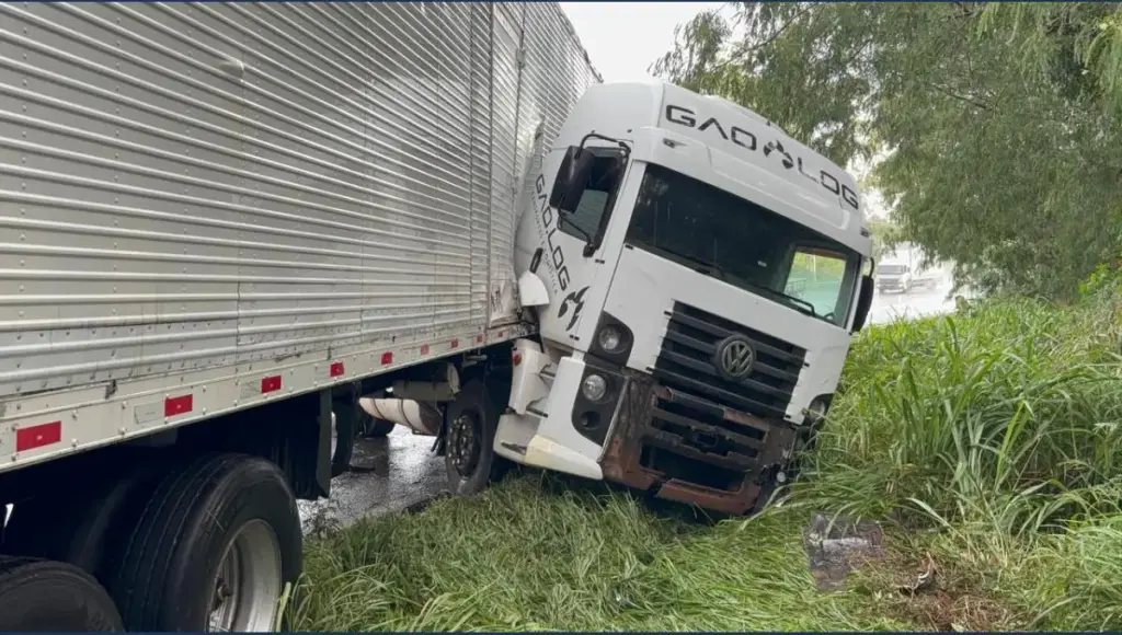 Segundo o relato de um dos homens que estavam na cabine, o acidente aconteceu em uma curva da rodovia, momento em que a carreta perdeu o controle e avançou para a pista contrária. Ao tentar retomar o alinhamento, o veículo acabou atingindo um barranco às margens da rodovia. O impacto entortou a cabine e causou danos ao baú.