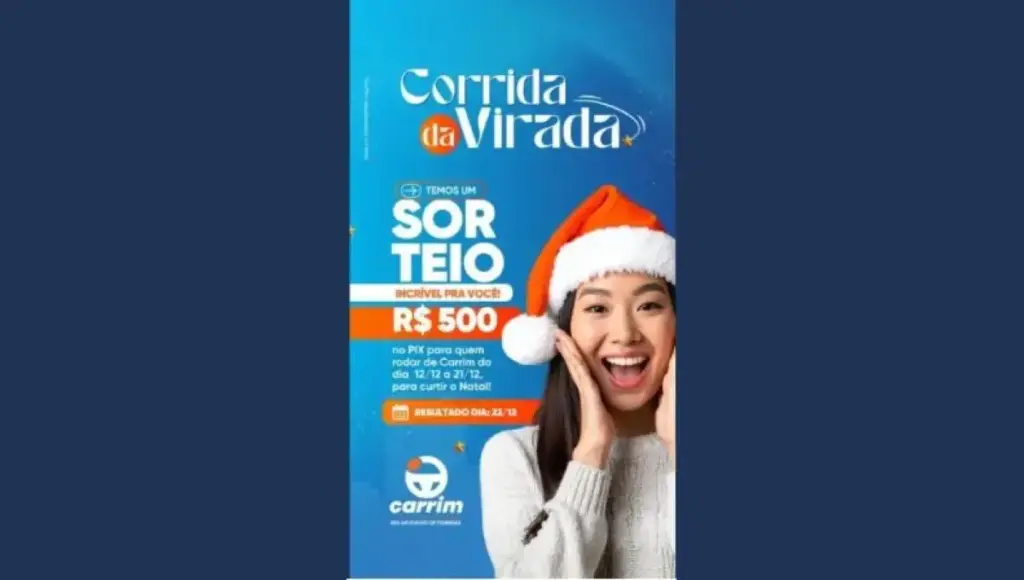O Carrim está fechando 2025 com uma ação especial para movimentar o fim de ano em Arapongas e Apucarana: a Corrida da Virada, uma campanha criada para premiar tanto passageiros quanto motoristas que utilizam o app durante o período festivo.