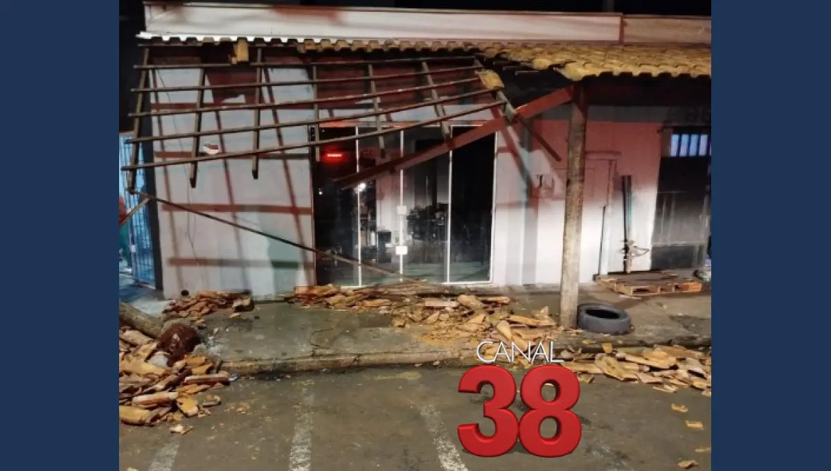 Para não bater de frente com o outro carro, o motorista do Uno desviou, mas acabou perdendo o controle da direção. O veículo avançou sobre a calçada e atingiu a fachada do estabelecimento comercial.
