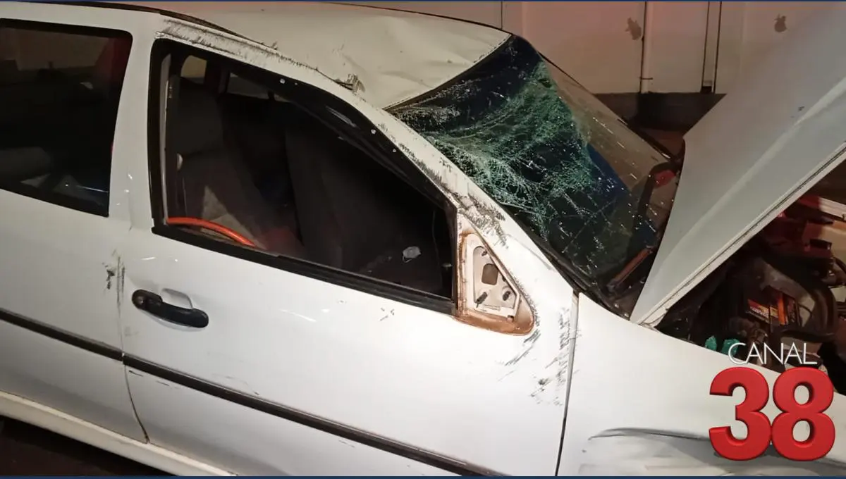 “A princípio não foi exatamente um capotamento direto, mas sim uma colisão. Ele acabou batendo nos veículos que estavam estacionados e, posteriormente, ocorreu o capotamento”, afirmou.