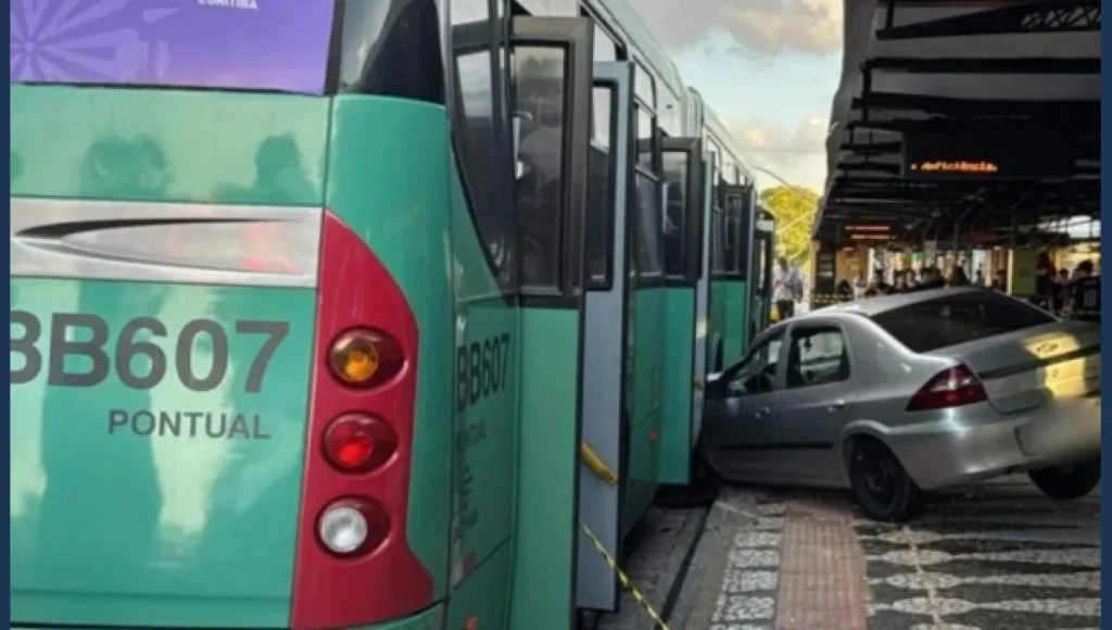 Um grave acidente no Terminal do Hauer, em Curitiba, deixou quatro pessoas feridas na tarde deste sábado (22). O veículo, um Chevrolet Prisma, perdeu o controle e invadiu a estação localizada na Avenida Marechal Floriano Peixoto, atingindo um ônibus e atropelando três mulheres, de 30, 34 e 46 anos. O motorista do carro, um homem de 31 anos, também se feriu.