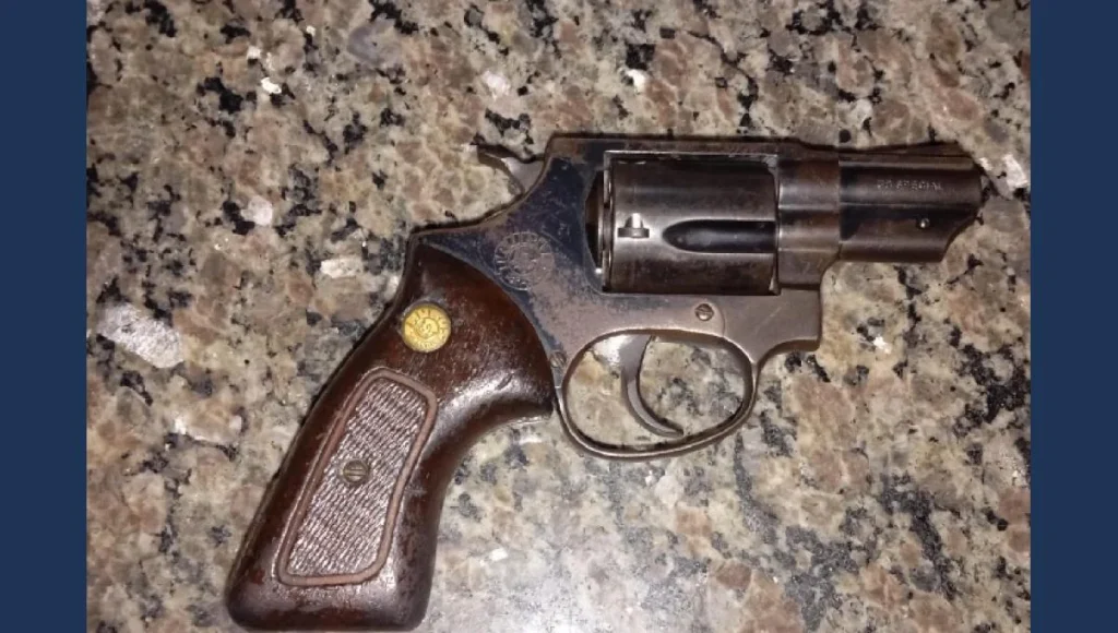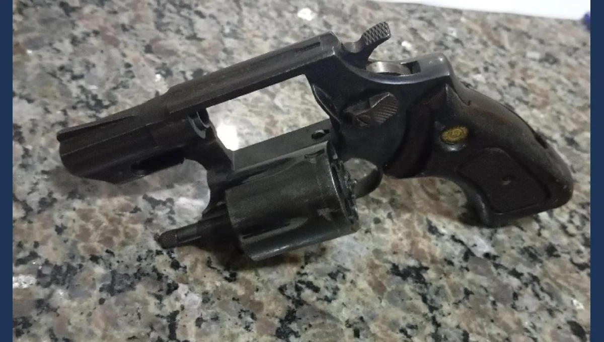 Ao chegar ao local, os policiais abordaram a suspeita e seu convivente, mas não encontraram nada de ilícito com eles. Contudo, o irmão da suspeita informou à equipe que a arma, um revólver Taurus calibre .38 desmuniciado, foi escondida pela mulher embaixo do sofá de sua casa, que fica ao lado da lanchonete. A arma foi localizada pela polícia sem numeração aparente.
