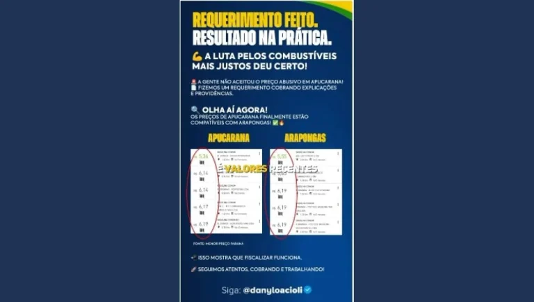 Danylo Acioli destaca redução no preço da gasolina após fiscalização da Câmara de Apucarana