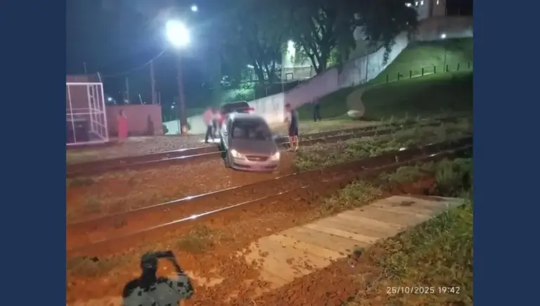 Guarda Civil Municipal de Apucarana e Bombeiro Retiram Carro Preso em Trilhos de Linha Férrea na Rua Professor Izidoro Luiz Ceravolo