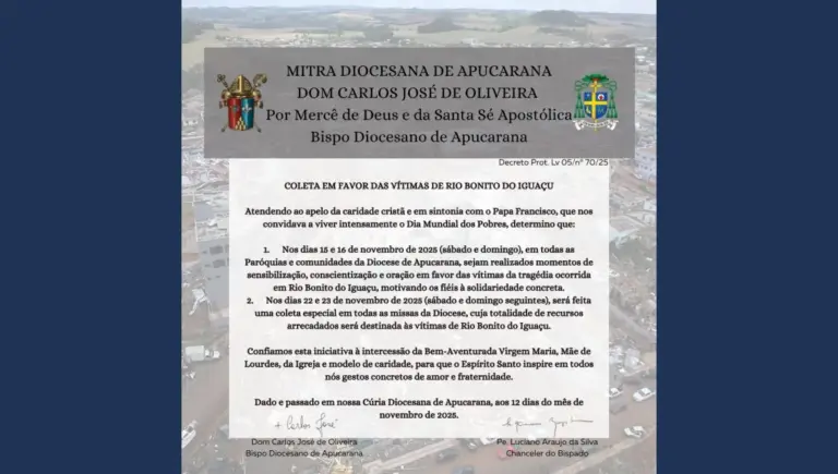 Diocese de Apucarana realiza campanha em favor das vítimas de Rio Bonito do Iguaçu