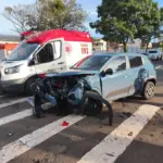 Colisão entre carro e motocicleta deixa homem ferido na Vila Reis, em Apucarana