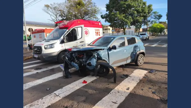 Uma colisão envolvendo um automóvel Santana Quantum e uma motocicleta Honda CG 160 foi registrada na tarde desta terça-feira (23), por volta das 13h38, na Rua Nossa Senhora do Bom