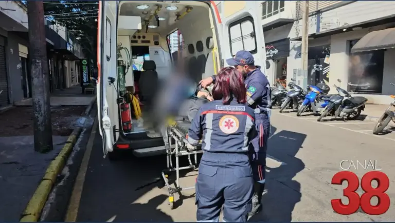 Motociclista e passageiro ficam gravemente feridos em acidente com carro no Centro de Apucarana