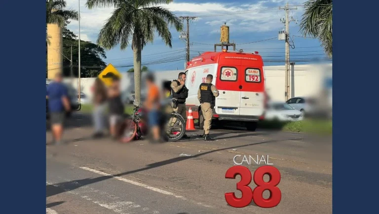 Na tarde deste domingo (02), um acidente envolvendo um veículo e uma motocicleta foi registrado no cruzamento da Rua Pavãozinho do Pará com a Rua Jurutau, no Jardim Bandeirantes, em