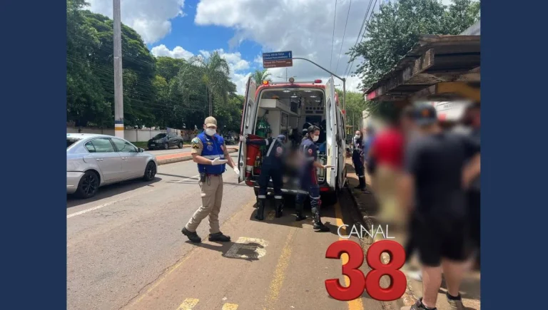 Nesta segunda-feira (10), um acidente envolvendo um ônibus, uma motocicleta e uma pedestre mobilizou equipes de resgate na área central de Apucarana. A colisão ocorreu no cruzamento da Rua Ponta