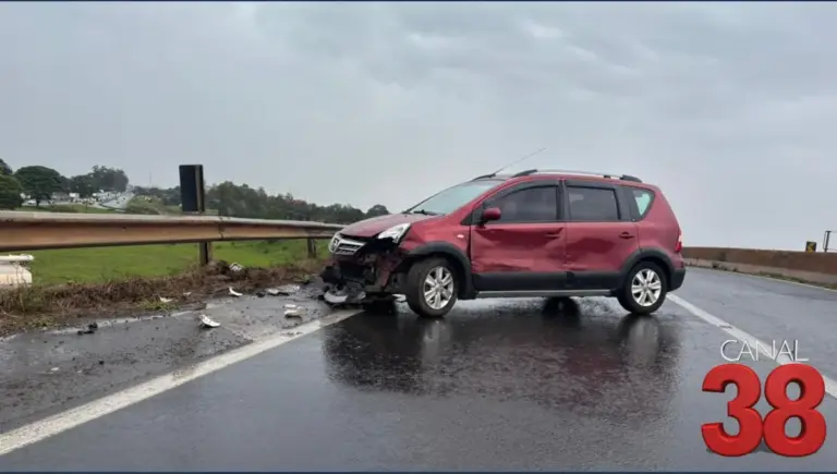 Carro perde o controle e colide em guard-rail no pontilhão entre Arapongas e Rolândia
