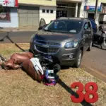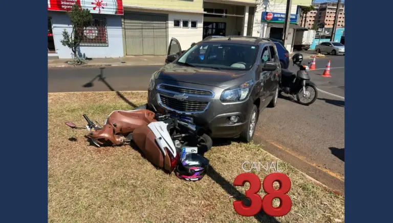 Na manhã desta sexta-feira (19), por volta das 08h19, uma colisão envolvendo uma caminhonete e uma motocicleta foi registrada na Avenida Mato Grosso, esquina com a Rua Emiliano Perneta, no