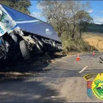 Carreta carregada com móveis capota em curva da PR-444 em Arapongas