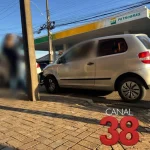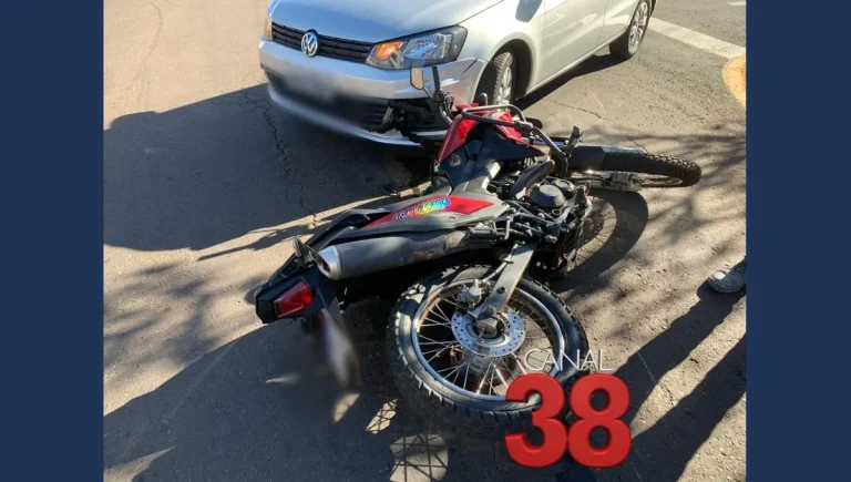 Uma colisão entre uma motocicleta e um carro foi registrada no final da manhã desta sexta-feira (01) na Rua Noboro Fukushima, esquina com a Rua Antônio José de Oliveira, na