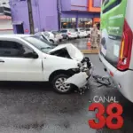 Carro colide na traseira de ônibus e deixa motorista ferido na Avenida Minas Gerais em Apucarana