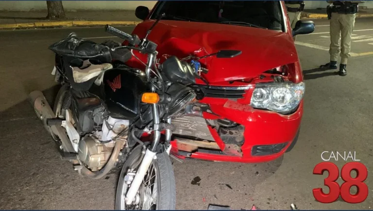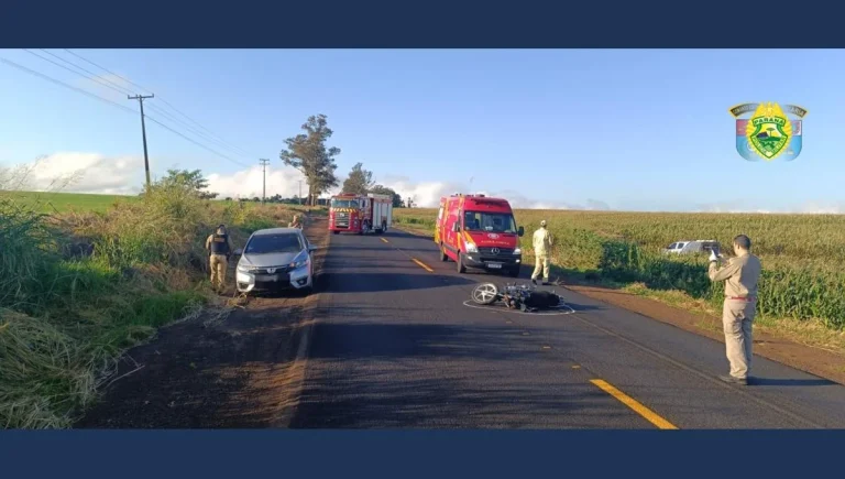 Na noite deste domingo (25), um acidente de trânsito envolvendo uma motocicleta e uma caminhonete mobilizou diversas equipes de emergência na Rodovia PR-218, próximo ao Campinho, na região central de
